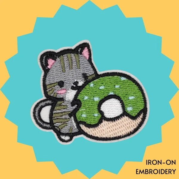 Cat with Green Donut Iron-on Embroidery